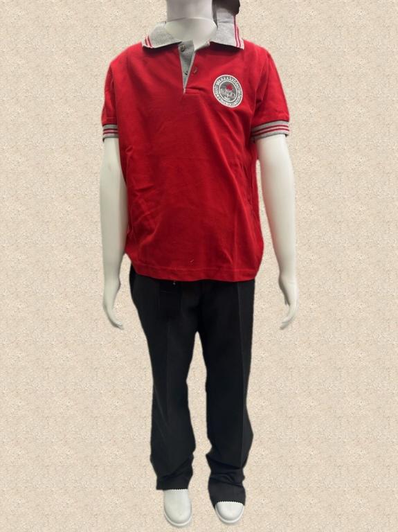 Polo yaka, kısa veya uzun kollu kırmızı renk tişört. Gri-Füme renkli kumaş veya keten pantolon giyeceklerdir.